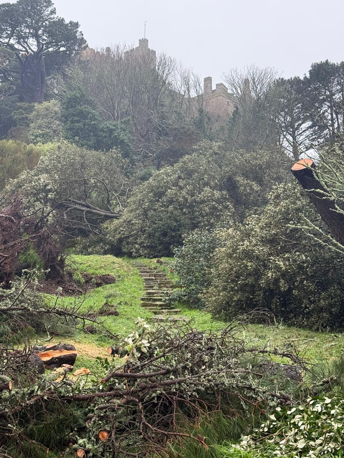 In the days following Storm Goretti, the landscape of St Michael's Mount has been left markedly changed. Gusts strong enough to fell mature trees and strip established planting have reshaped areas that have taken generations to form.