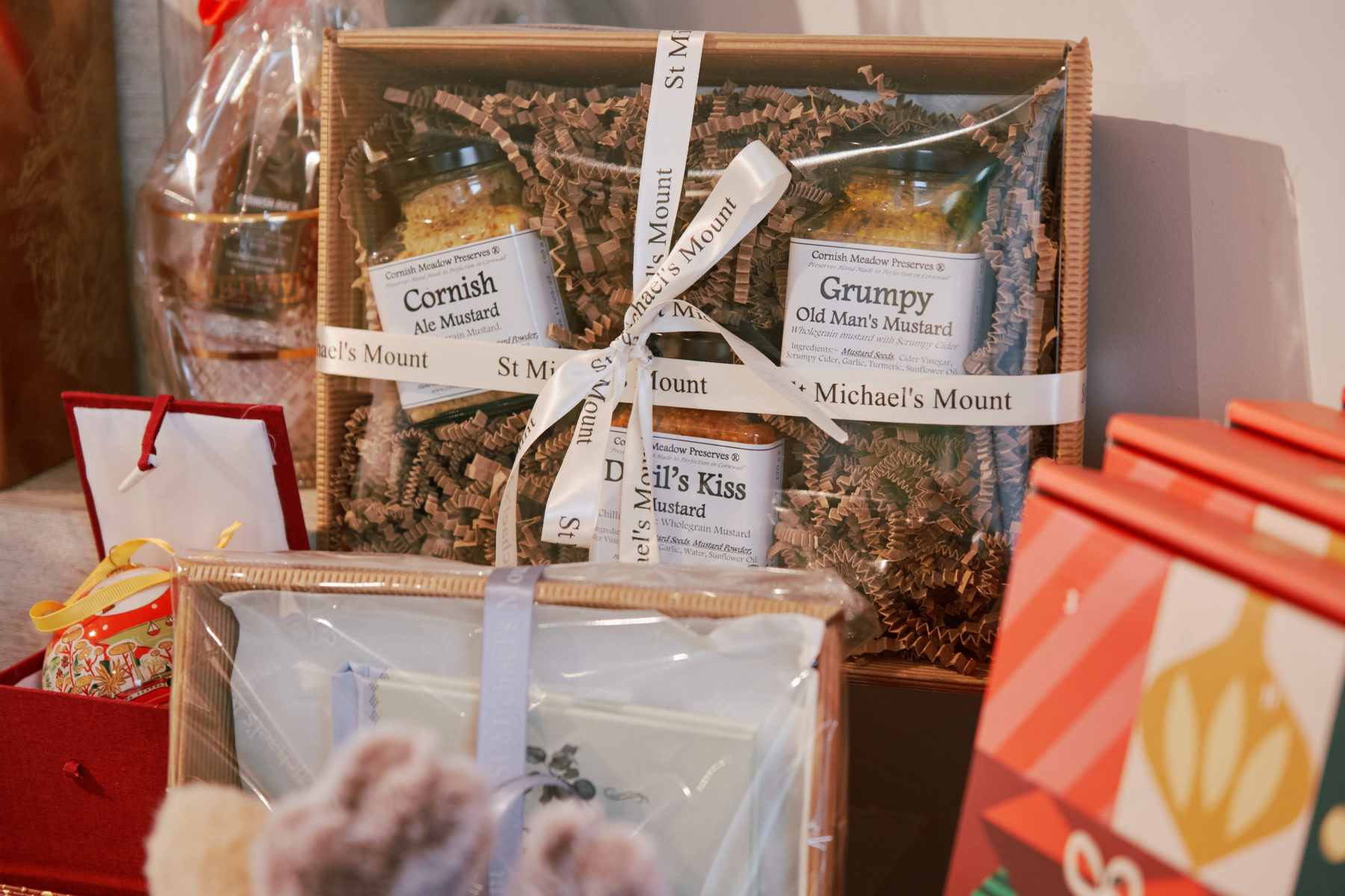 Step inside the Mount Shop this winter and discover the magic of Christmas shopping by the sea. From irresistibly soft Jellycats and children’s classic festive books to locally made chocolates and baskets brimming with Cornish treats. Toast the season with a selection of local spirits and liqueurs, or pick up a pair of Christmas socks to add a touch of festive cheer, along with teas, chutneys and giant chocolate coins.